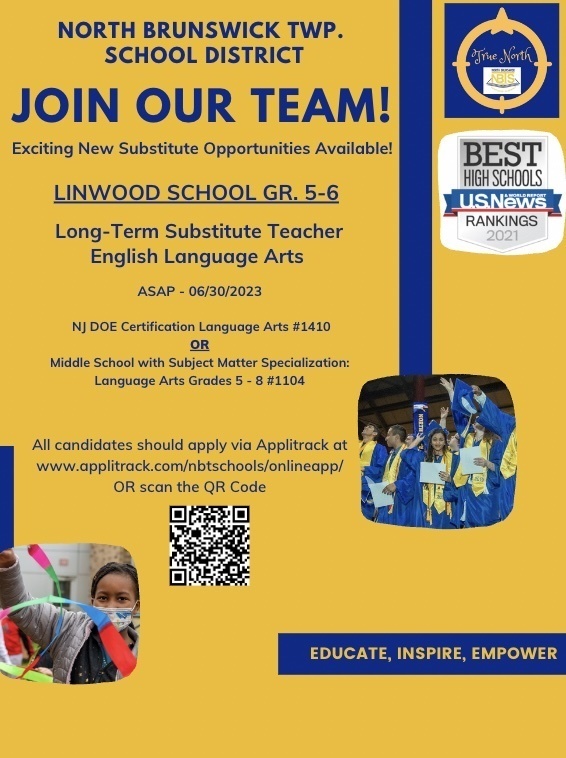 EXCITING LONG-TERM SUBSTITUTE TEACHING OPPORTUNITIES FOR THE 2023-24 SCHOOL YEAR - JOIN OUR DYNAMIC TEAM! Apply now at www.applitrack.com/nbtschools/onlineapp