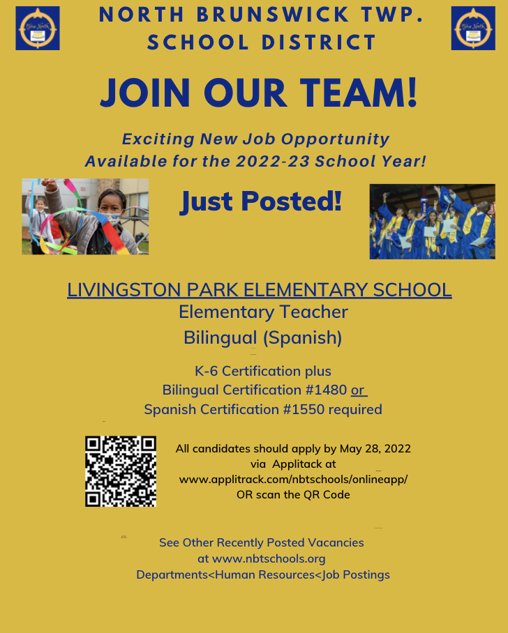 OPENINGS FOR LUNCHROOM /PLAYGROUND AIDES NOW AVAILABLE AT LIVINGSTON PARK ELEMENTARY! - JOIN OUR DYNAMIC TEAM! Apply now at www.applitrack.com/nbtschools/onlineapp/
